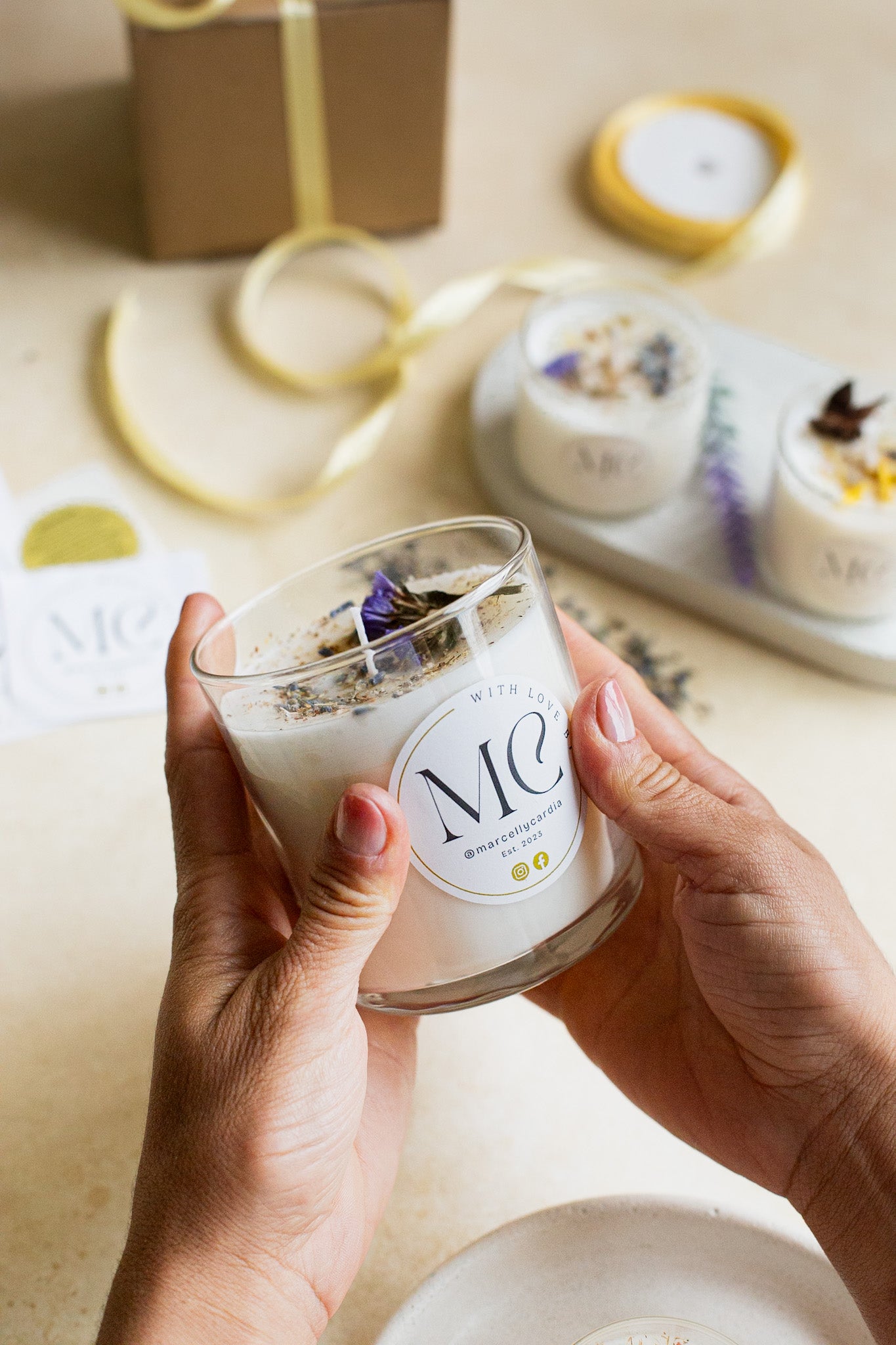 At M.C Candles, we take pride in crafting each candle with care, using only the finest natural ingredients. Every candle is made from 100% soy wax, cotton wicks, and high-quality essential oils, ensuring a clean and eco-friendly burn. We even incorporate home-dried flowers into our designs, giving each candle a special, handcrafted touch. Made in small batches, no two candles are exactly alike - each one is uniquely made with love and attention to detail.